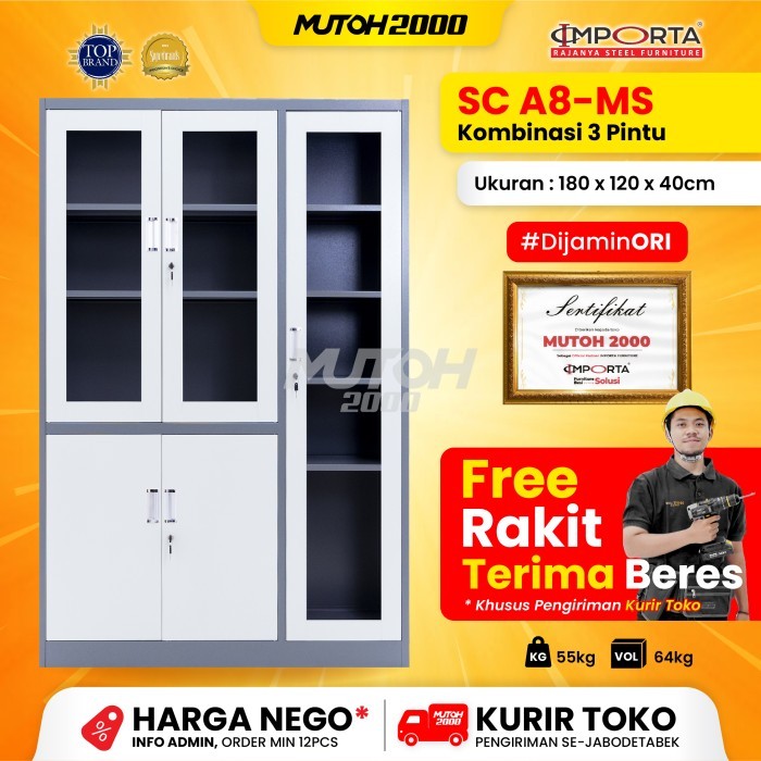 IMPORTA LEMARI ARSIP BESI FILLING CABINET 3 PINTU SWING KOMBINASI PINTU AYUN IMPORTA A8-MS