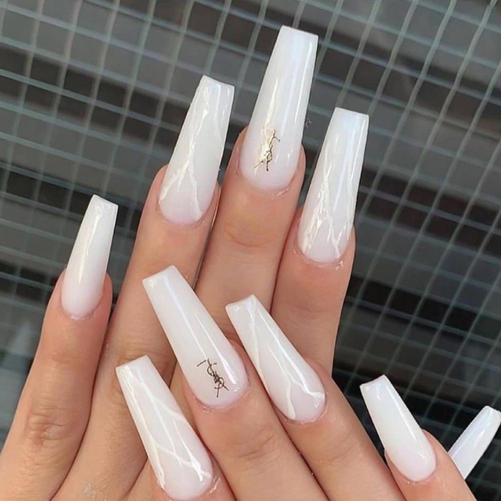 24-Piece Ombre Marble Ballet False Nails with Nail Art Stickers in European and American Style.