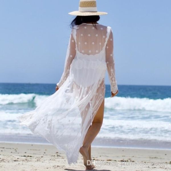туники для пляжа длинные кружева пляжное платье купальники женщины плавать прикрытия плюс размер кружева цветочные вышивки полые солнцезащит, White;black