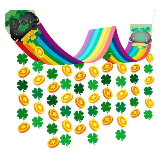 улица. Потолочные украшения в виде радуги на День Святого Патрика, длинный радужный подвесной баннер с нитью, золотая монета-трилистник, потолочная гирлянда для ирландцев Sets