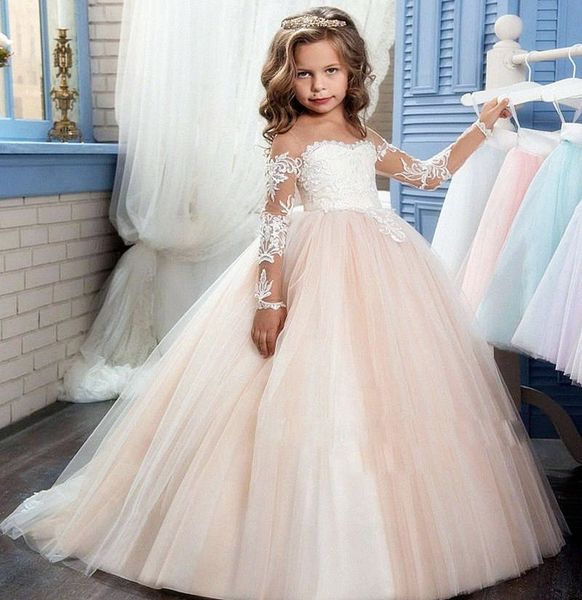 формальные тюль пользовательские без бретелек с длинным рукавом симпатичные маленькие девушки цветка платье бальное платье длина пола малень, White;blue