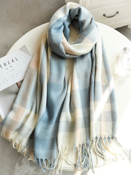 шарф штрафы женские осень зима корейский короткие тонкие тонкие британские студенты мягкие девушка синяя шея мода, Blue;gray