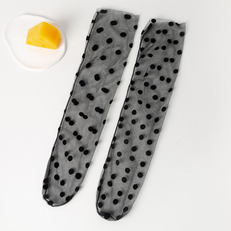 шелковые чулки без каблука родитель-ребенок ins личность точка сексуальные кружевные сетчатые носки прозрачные эластичные сетчатые нитки тонкие женские чёрный