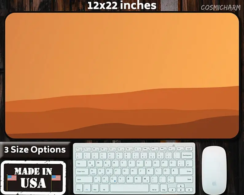 Orange Colors Desk Mat, Sand Dumes Desk Pad, Sunset Desert View, Extended Mouse Pad, Large Mat Gift For Desert Lovers