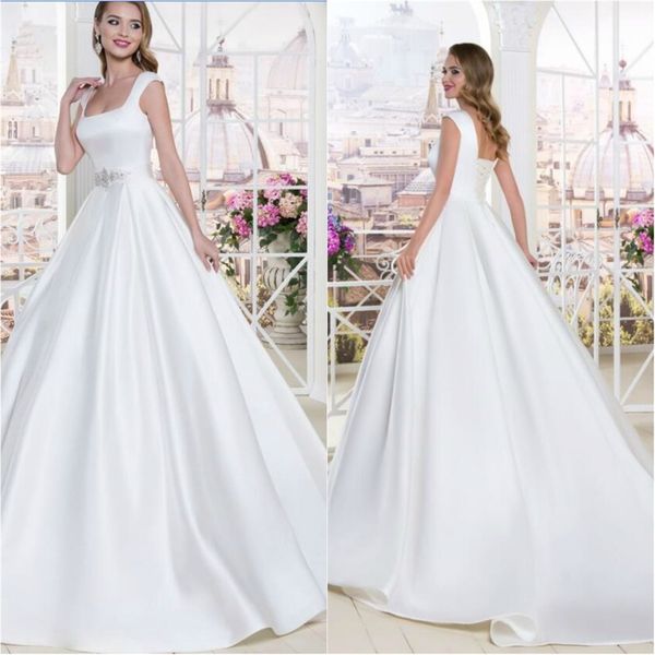 элегантный белый атлас a line свадебные платья ремень простой пляж boho свадебное платье из бисера пояс халат de mariée свадебные платья, White