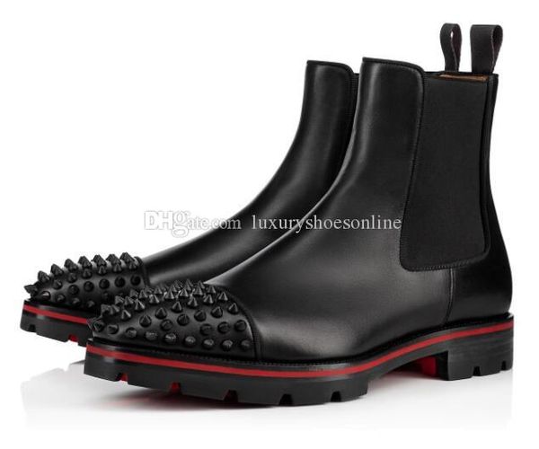 элегантный бренд 1.1 дыня шипы черный телячья кожа натуральная кожа мужская обувь красное дно ботильоны человек резиновый наконечник подошва, Black