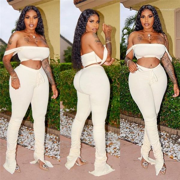 одежда streetwear 2 piece set женщины crop top комбинированной брюки split matching оттеняет плечевым клуб нарядов лето, White