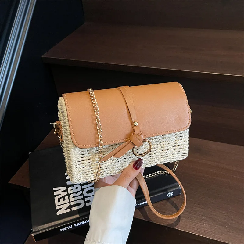 Новинка 2023 года, тканая квадратная сумка, стильная летняя сумка через плечо для женщин, нишевая соломенная сумка в стиле бохо, модная универсальная сумка