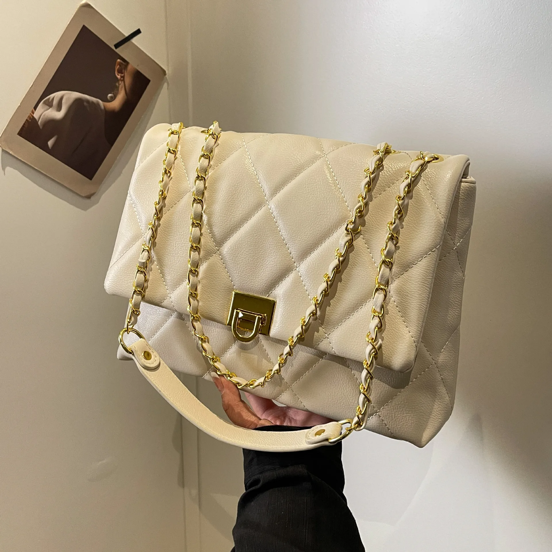 Легкая стеганая большая сумка осень 202, шикарная сумка через плечо с цепочкой, просторная сумка через плечо под мышками