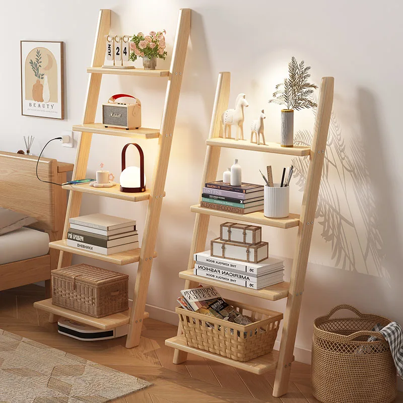 Настенная полка из цельного дерева, креативный книжный шкаф-лестница, прочная напольная полка для хранения, минималистичный стеллаж для учебы на балконе