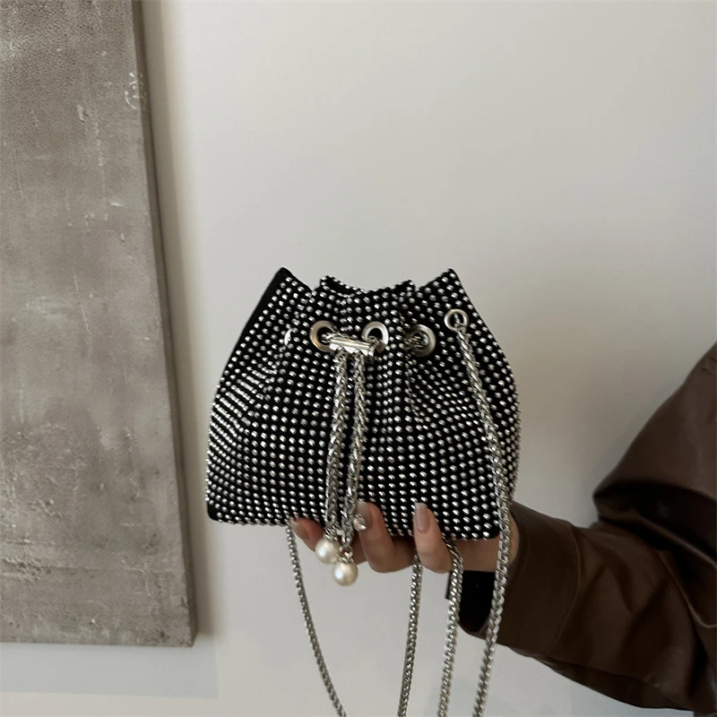 Сумка-ведро с тиснением стразами и ремешком-цепочкой, модная вечерняя сумочка для женщин, уникальная сумка через плечо в стиле бохо-шик