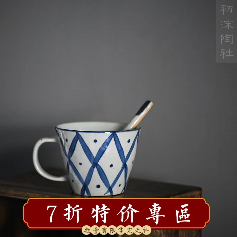★Ручной спрей синяя грубая керамика восстанавливающая старинная кофейная чашка для молока ручная роспись фарфоровая офисная чайная чашка