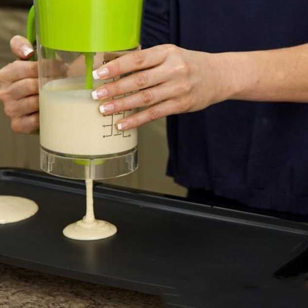 Pancake Machine untuk mengaduk adonan kue. Alat Pengaduk Adonan Kue ini didesain dengan sistem otomatis menggunakan tenaga baterai, Kapasitas penyimanan batter yang besar cocok menjadi teman membuat kue.