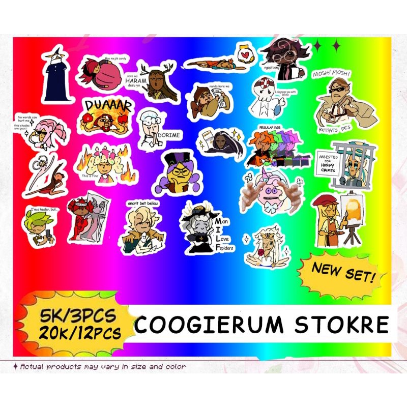 Sticker Vinyl Die-cut, badly hand-drawn fanmerch dengan karakter dari franchise Cookie Run Kingdom dan Ovenbreak by krwnzc.