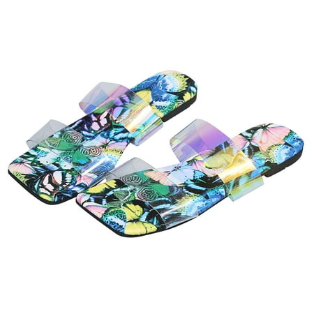 Aayomet House Slippers Women s Beach Slide Casual Flat Slippers Printed Fashion Sandals Shoes Women s slipper Blue 7.5