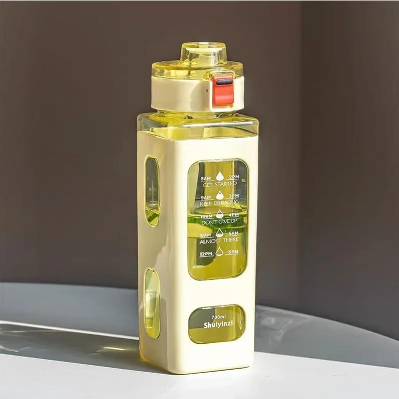 0,7 л летняя спортивная чашка для воды, квадратная портативная соломенная бутылка, большая емкость, пластиковая бутылка для напитков, чайник, кухонные принадлежности 700ML жёлтый