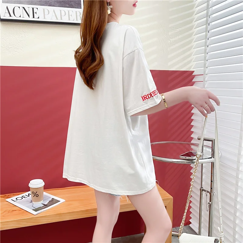 #0755 черно-белая футболка с коротким рукавом, Женская свободная забавная Футболка с цветами для девочек, хлопковая летняя уличная футболка в ...