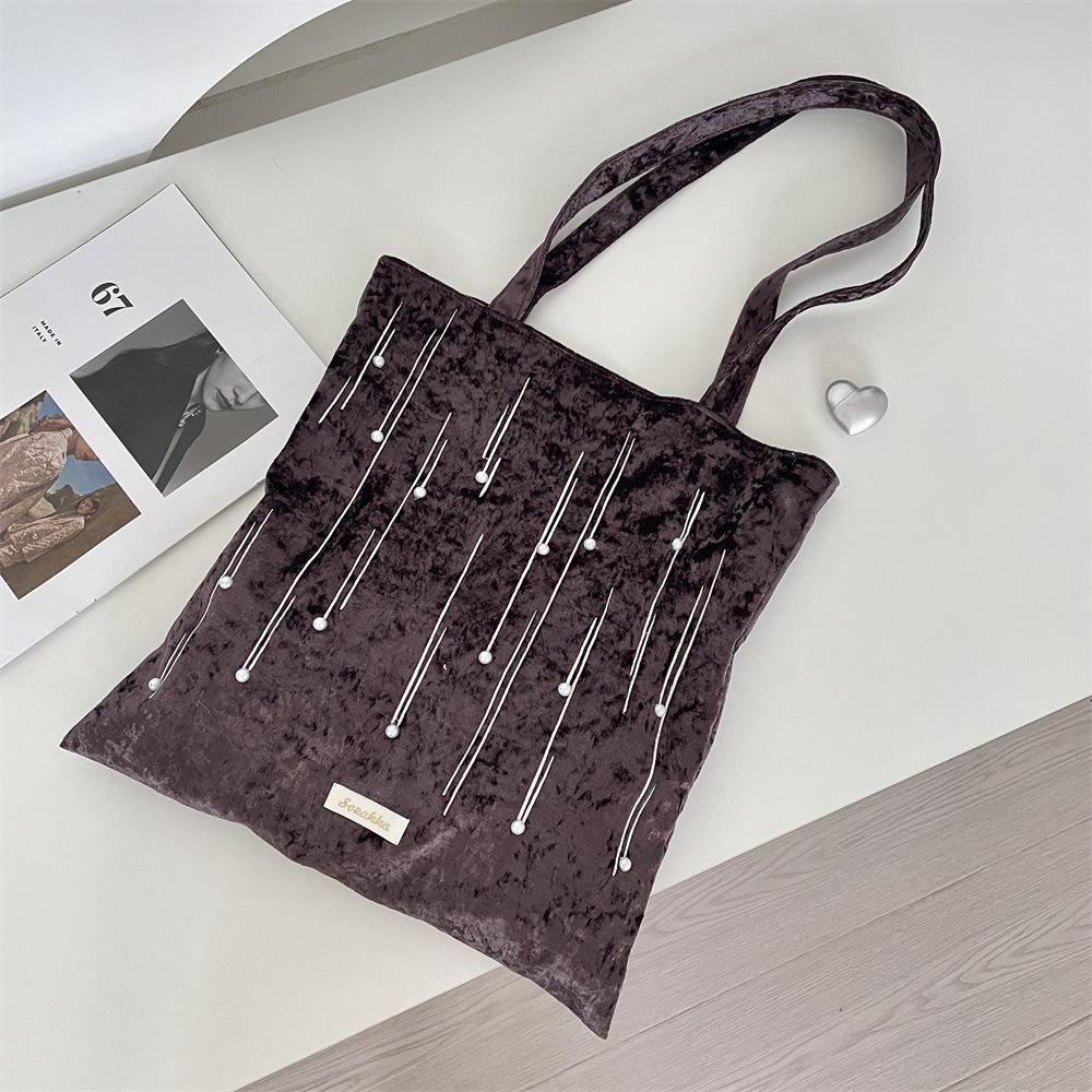 1 Бархатная сумка через плечо большой вместимости с бусинами «Ледяной цветок», холщовая сумка, женская сумка для покупок, хозяйственная сумка коричневый