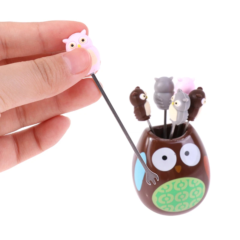 1 Набор вилка для фруктов креативная маленькая вилка с рисунком Совы Милая вилка для рта симпатичная портативная зубочистка для фруктов вил...