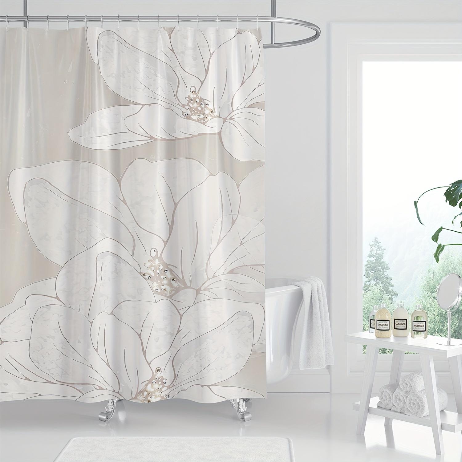 1 Современная Цветочная Шторка для Душа - Полиэстер Декор для Ванной Комнаты, Белые Цветы и Бежевый Фон, Машинная Стирка, Современный Декор 220X180cm
