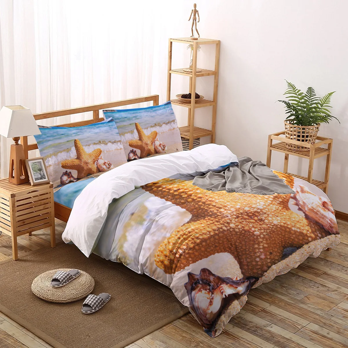 2/3/4pcs Bedding Set Beach Starfish Conch Duvet Cover Creative Comforter Bed Cover Set Housse De Couette Bedclothes