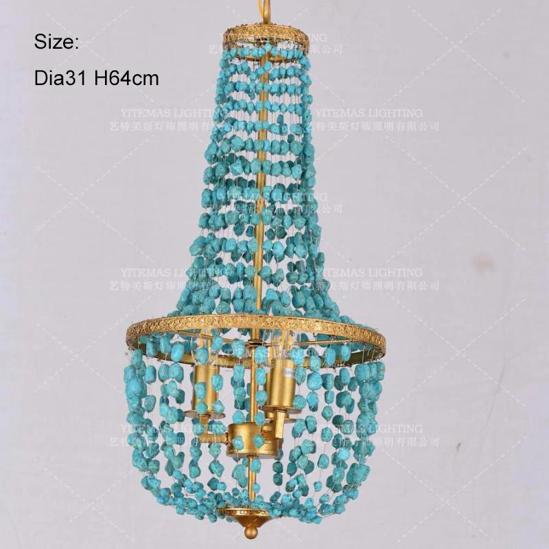 1 винтажная Золотая люстра, люстра с камнями и бусинами, светильник ящаяся бирюза во французском стиле, античная подвесная зеленая ретро-люс...