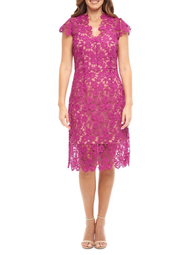 Коктейльное платье из кружева с V-образным вырезом Rene Ruiz Collection, фуксия, Розовый, Коктейльное платье из кружева с V-образным вырезом Rene Ruiz Collection, фуксия