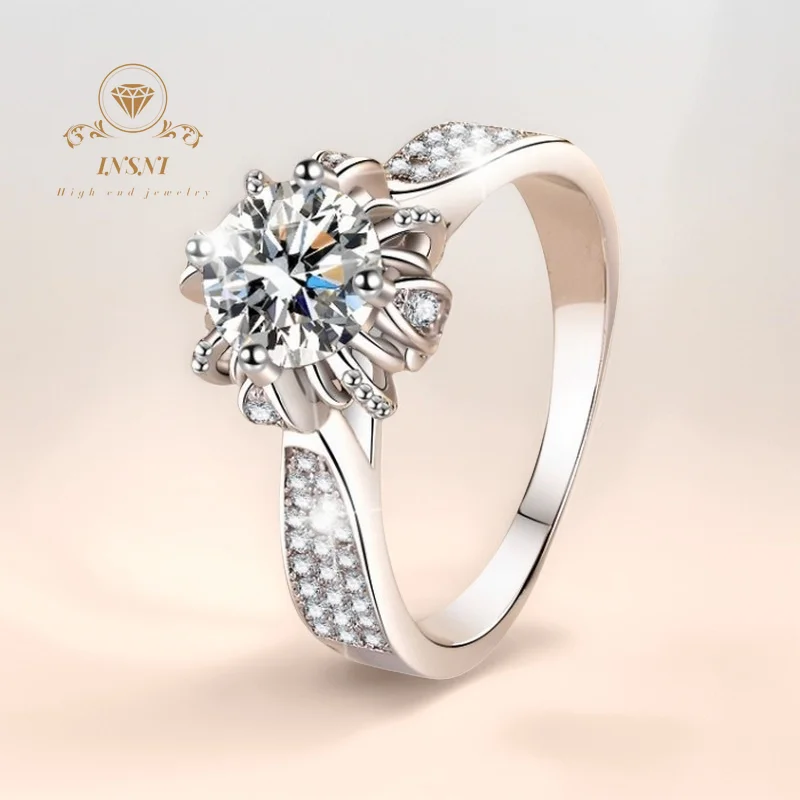 1 карат Муассанит Роскошные Кольца с Бутоном Розы Корона S925 Серебро Женское Сертифицированное GBA Обручальное Кольцо Бесплатная Подарочная Коробка Элегантный Блестящий Ослепительный