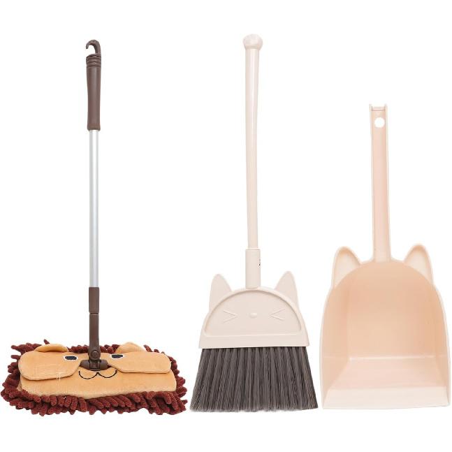 1 комплект Мальчик Девочка Веник и Швабра для Малышей Мини Инструменты для Уборки с Совком для Игры Понарошку и Домашней Работы для Дома и Детского Сада бежевый