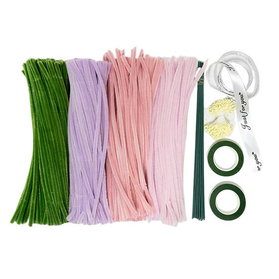 1 комплект ершика для чистки труб, набор цветочных материалов с лентой для стебля и тычинок, 4 цвета, шенилл, стержень, скручивающаяся палочка, украшение в виде цветка тюльпана своими руками