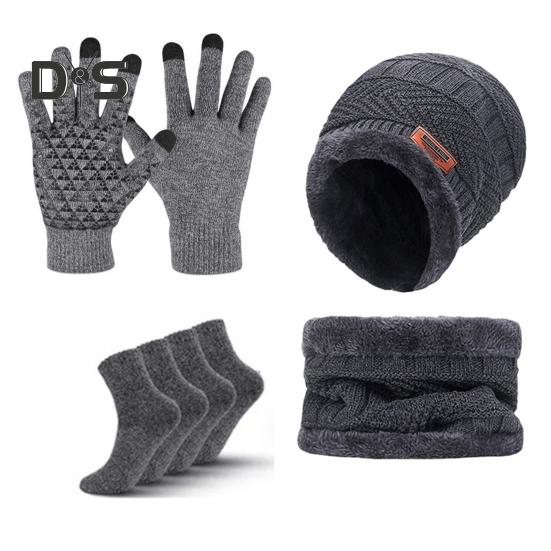 1 комплект зимней шапки, шарфа, перчаток и носков, трикотажные толстые эластичные перчатки с отличным трением, ветрозащитные утеплители для шеи, носки для холодной погоды, велоспорта, кемпинга, рыбалки серый