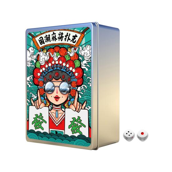 1 комплект игральных карт для маджонга с кубиками, китайская традиционная опера с принтом, водонепроницаемая портативная мини-бумага, покерная карта Mah Jongg, дорожная семейная карточная игра зелёный