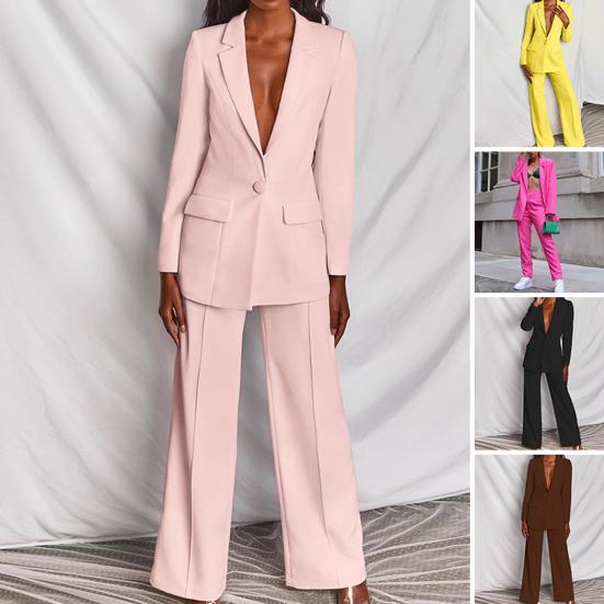 1 комплект, костюм-пиджак, однотонный костюм из полиэстера с высокой талией, женский офисный пиджак с прямыми брюками, комплект