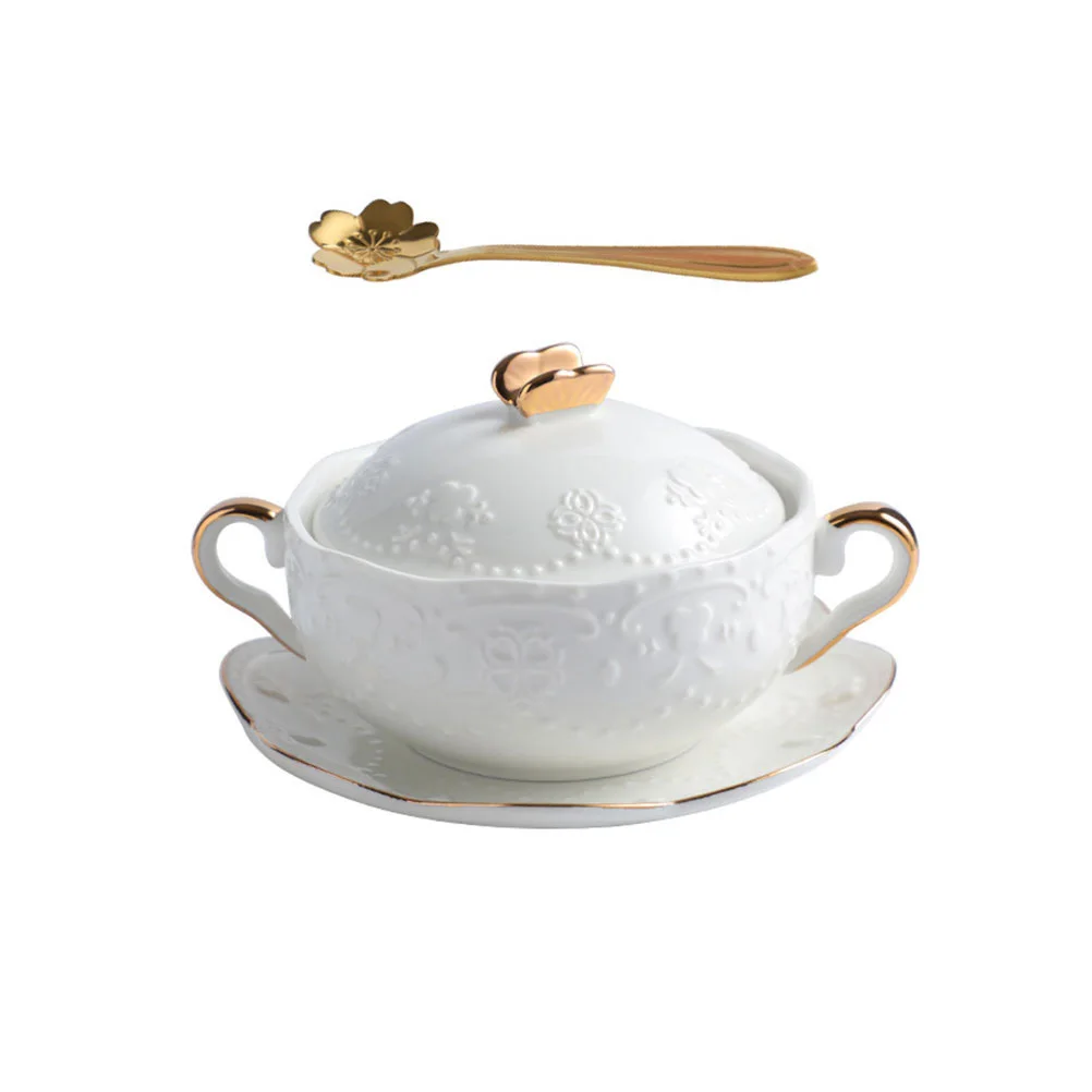 1 комплект, миска для десерта с двойным ухом, керамическая чашка для тушения, изысканная миска для супа с крышкой, ложка, домашняя кухонная посуда, керамическая чашка для тушения