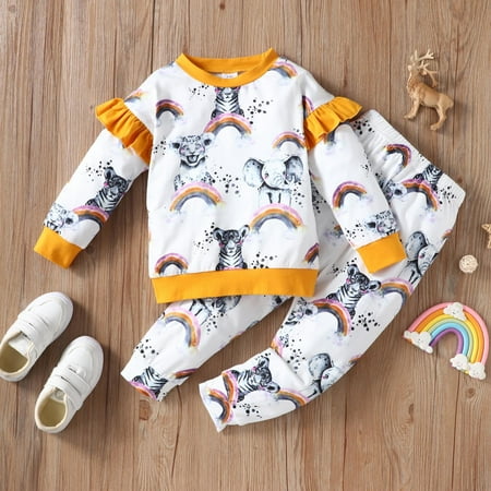 Leutsin Autumn Newborn Girls Clothes Animal Rainbow Long Sleeve Tops Trousers Suit