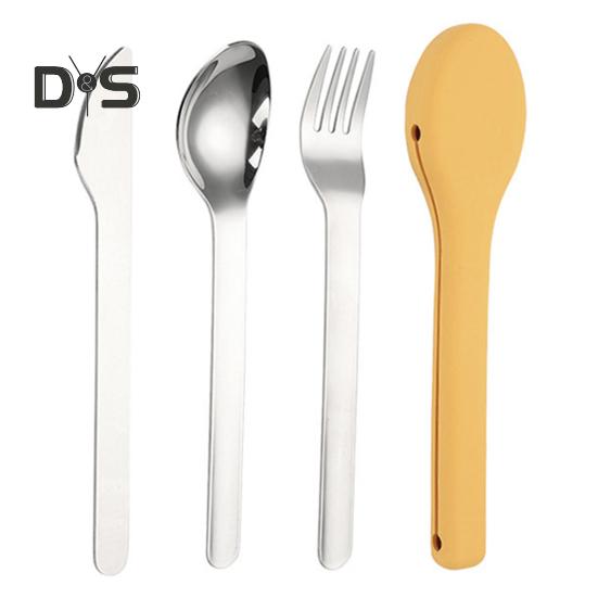 1 комплект столовых приборов из нержавеющей стали с силиконовым чехлом, легко переносить в посудомоечной машине, безопасная ложка, вилка, резак, набор посуды для кемпинга жёлтый