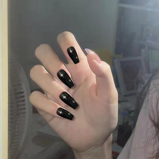 1 комплект, черные французские ногти с накладными ногтями, гелевые накладные ногти, акриловые ногти с сердечком на день Святого Валентина, накладные ногти с полным покрытием и стразами, искусственные ногти