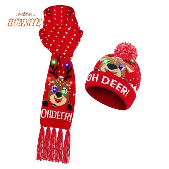 1 комплект, комплект шапок и шарфов, светодиодная рождественская шапка, снежинка, Санта-Лось, рождественская елка, принт, яркий цвет, унисекс, новогодний праздничный шарф с кисточками, комплект шапок красный