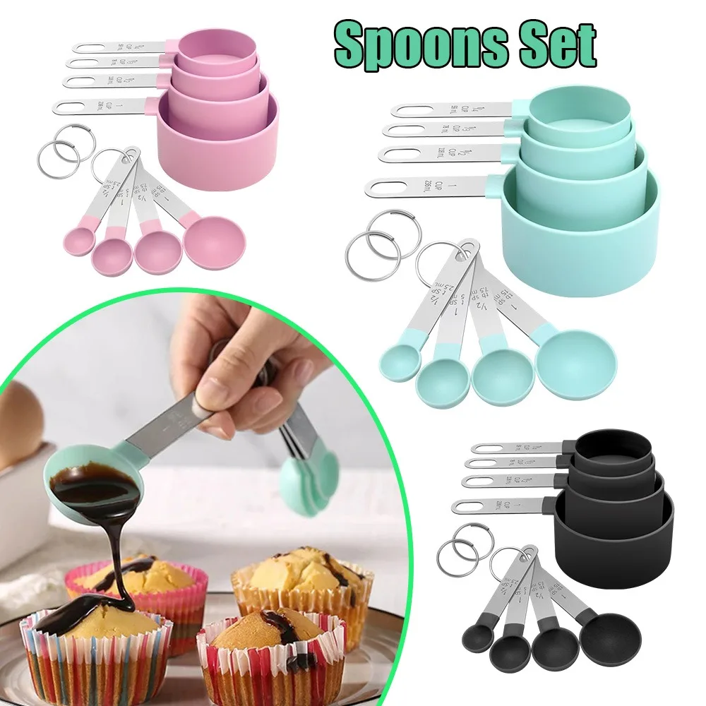 1 комплект, штабелируемые мерные стаканчики из нержавеющей стали, набор ложек, 8 шт., пластиковая ручка без BPA со следами для выпечки на кухне, приготовления пищи