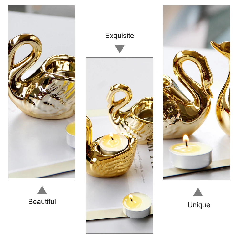 2Pcs Gold Ceramic Swan Candleholders Unique Wedding Desktop Decor Tealight Stick Stylish Ceramic Candleholders