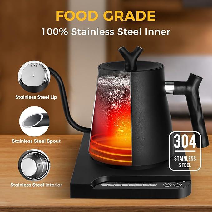 1 л Электрический чайник для здоровья 304 Нержавеющая сталь Электрический чайник Кофейник с индикатором температуры Сенсорная панель