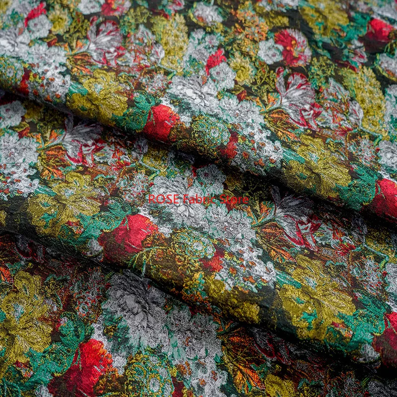 1-метровая классическая ретро-окрашенная в пряже жаккардовая ткань, картина маслом, текстура, женская мягкая сумка с цветочным принтом, ткань для изготовления своими руками