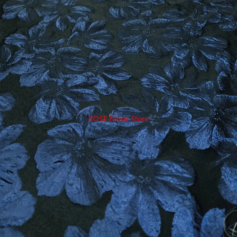 1-метровая элегантная черная, синяя яркая шелковая рельефная цветочная жаккардовая ткань, женское платье, ветровка, сумка, декоративная швейная ткань