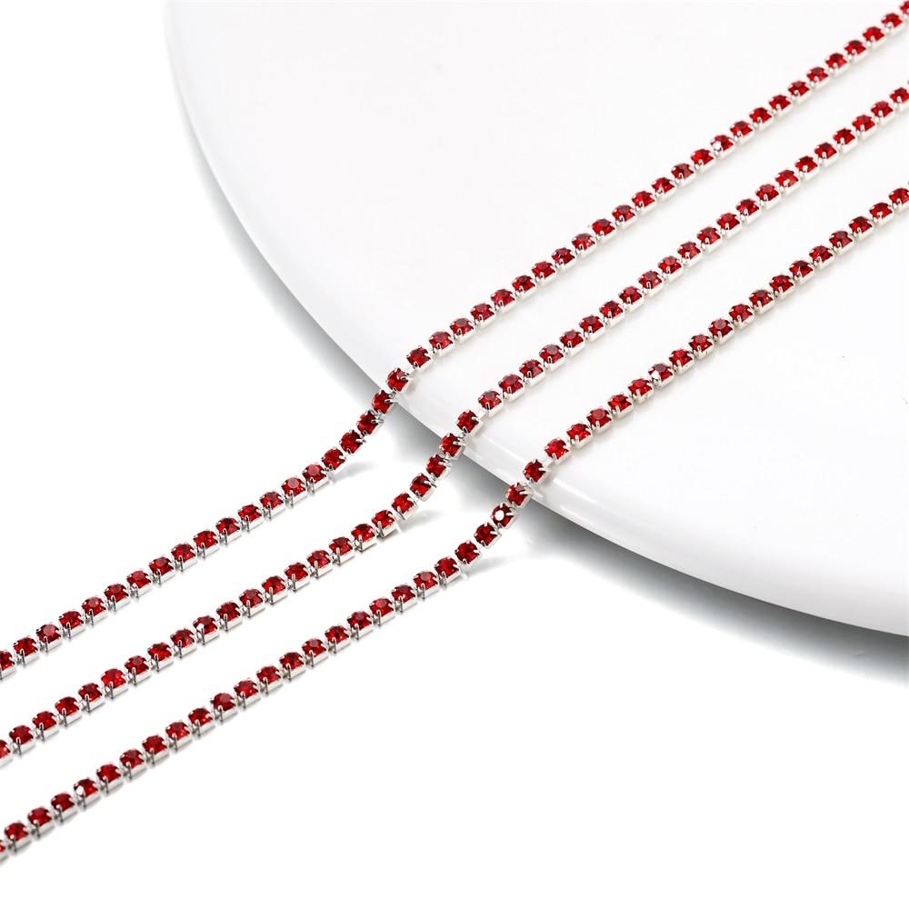 1 метр, цепочка со стразами, серебряная основа, стеклянные стразы, красочная цепочка для отделки чашек для DIY ожерелья, аксессуары для изготовления ювелирных изделий
