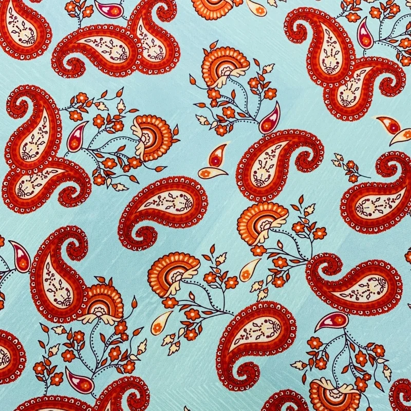 1 метр, 100% шелк шелковицы, креп-шелковая ткань 16 мамме, синяя с красным пейсли с цветочным принтом, ширина 140 см, 55 дюймов, по дворам, JX020