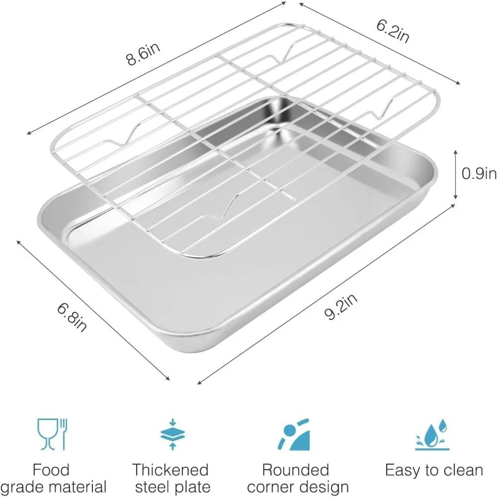 1 набор из противня из нержавеющей стали и сетчатого лотка для печенья с решеткой для охлаждения, аксессуар для тостера и духовки 23*17,5 см