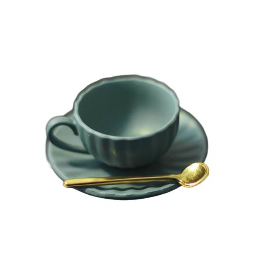 1 набор кукольный домик кофейная чашка реалистичный сплав миниатюрная чайная чашка блюдце ложка набор модель украшение для микроландшафта S синий