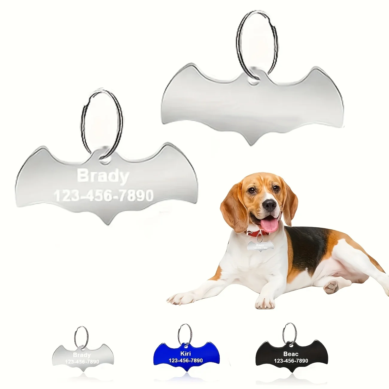 Customized bat-shaped metal pet identity plates with engraved exclusive logos, sturdy and not easy to fall off outdoors