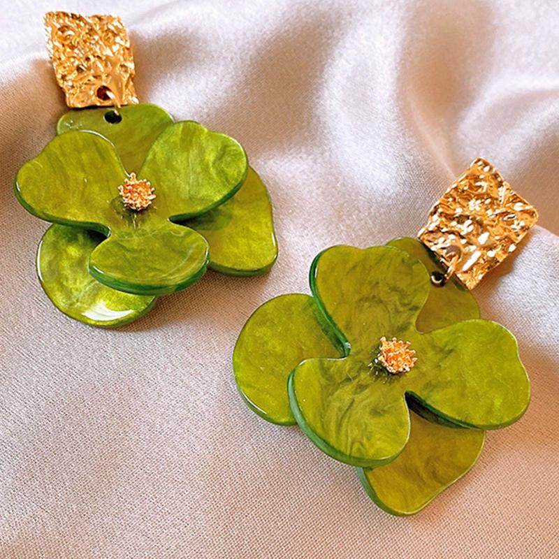 1 пара Винтажные Роскошные Преувеличенные Серьги с Цветочным Дизайном для Женщин, для Вечеринок и Праздников one-size зелёный