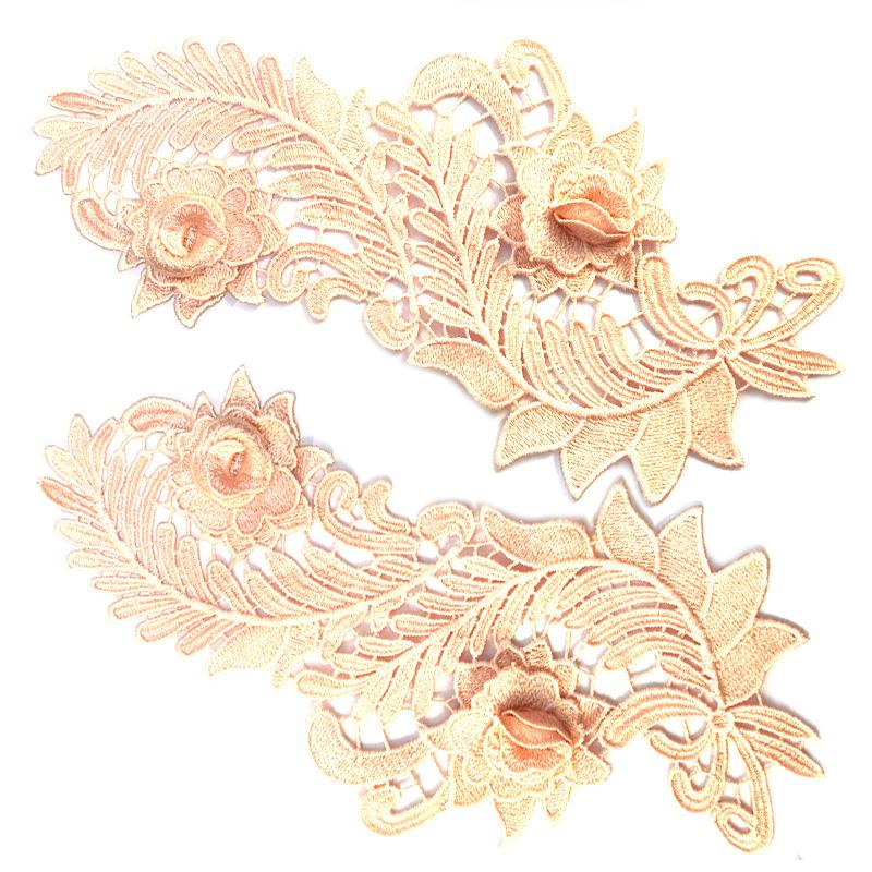 1 пара аппликаций из ткани с цветами для модной одежды, платья, декора, 3D, полые, водорастворимые, для DIY-поделок, кружевная вышивка золотой/красный